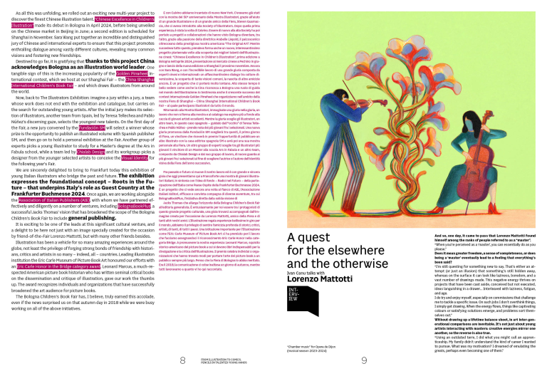 A magazine in the form of an exhibition catalog, or an exhibition catalog in the form of a magazine? We like hybrids, middle grounds, and diagonals. So we put 30 authors and one master on the pages (and walls) of the Frankfurt Book Fair. An aniconic (or hypericonic) cover with four symbols for the four areas in which the 30 talented young hands were selected and grouped by Ivan Canu, Grazia Gotti, and Silvana Sola.