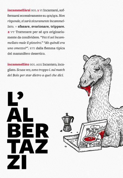 L’Albertazzi. Dizionario, grammatica, storie di slang bolognese in una variante di balotta è un progetto editoriale che abbiamo intercettato, apprezzato, incubato e trasformato nella sua veste grafica. Lo abbiamo fatto con Francesco Perlini, autore del libro nonché membro della balotta degli Albertazzi, che hanno distorto lo slang bolognese in una versione tutta loro.