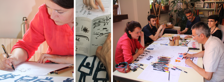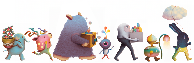 The Visual Identity Workshop was established before COVID-19 began to circulate. The whole thing was based on four words: evocative, primordial, monochrome and symbolic. This was what we wanted to achieve with the visual identity for BCBF 2020. The illustrators in the Illustrators Exhibition 2019 who showed the greatest affinity with this, were Rasa Jančiauskaitė (Lithuania), Miyata Takashi (Japan), and Ten Yu (Taiwan). These four words were particularly evident in the work of Rasa Jančiauskaitė, which indicated a potential way forward for us. She was “our” illustrator. During the workshop held at our studio, Rasa drew with us and our design team drew with her. This was July 2019. We worked with no masks or social distancing and with pencils, pens and no limits. We produced a series of ideas that Rasa then took home with her to Lithuania. And little by little, the BCBF 2020 visual identity began to take shape with the phrase: “Giving Life to Children’s Content”. The backstage experience is captured here: BCBF20 Backstage.