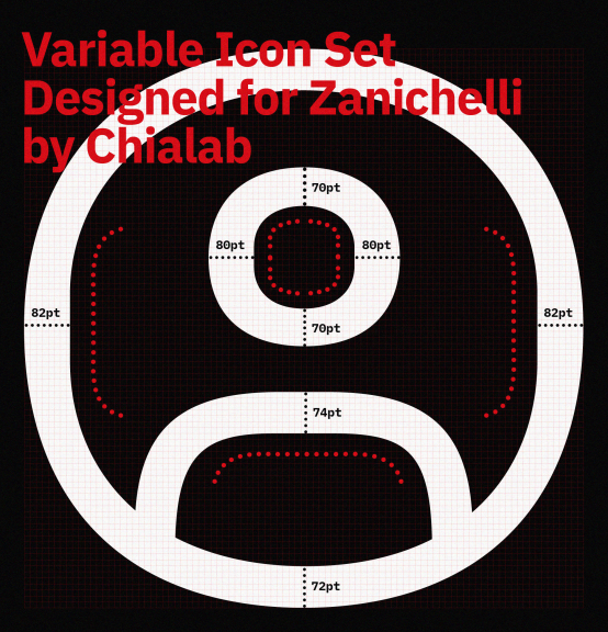 Abbiamo moltiplicato questa sfida per oltre 200 esemplari, è nato così il set di icone Zanichelli. Sono incorporate in una vera e propria font variabile che asseconda non solo i giochi di curve e squadrature della font IBM Plex, ma anche tutti i suoi possibili pesi e spessori, adatti ciascuno a una diversa circostanza.