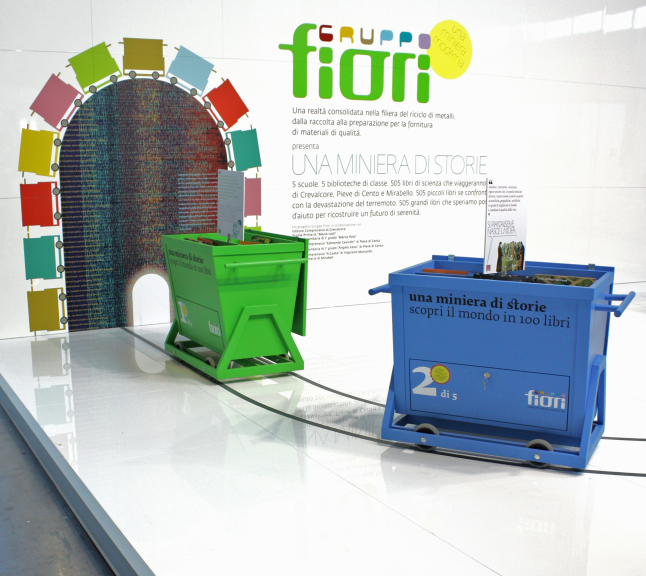 Con l’edizione 2008, Siamo tutti minatori, abbiamo allestito una mostra interattiva per raccontare a bambini e ragazzi i vantaggi per l’ambiente del riciclo dei metalli. Nell’edizione 2009, Lettere dai rottami, abbiamo fatto parlare direttamente i rottami. Abbiamo disegnato un alfabeto con i pezzi di metallo raccolti nei cantieri del Gruppo Fiori e coinvolto lo scrittore Matteo Marchesini, che ha scritto 26 storie sulle vite precedenti dei metalli raccolti. Per l’edizione 2010, Faccia da riciclo, abbiamo sondato cosa pensano le persone del recupero e riutilizzo dei materiali. Con il coinvolgimento degli allievi della Scuola elementare di scrittura diretta da Paolo Nori, abbiamo registrato e fotografato storie di “riciclaggio domestico”. Poi Formulare il futuro, edizione 2011: una parete in metallo, quella dello stand o quella del frigo di casa, 100 parole magnetiche e la possibilità di comporre il futuro.